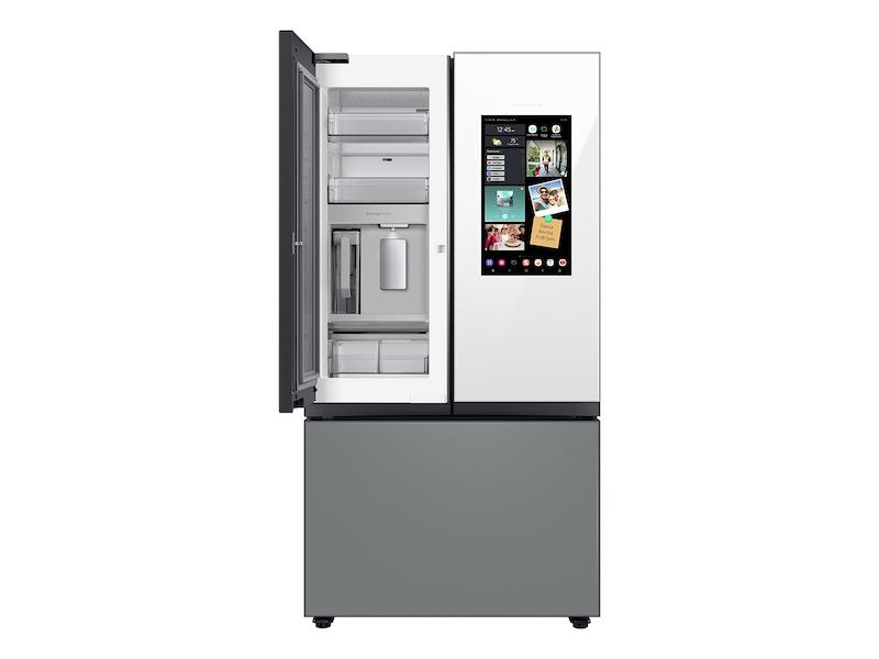 Bespoke 3-Door French Door Refrigerator (24 cu. ft.) - with Top Left and Family Hub(TM) Panel in White Glass - and Matte Grey Glass Bottom Door Panel