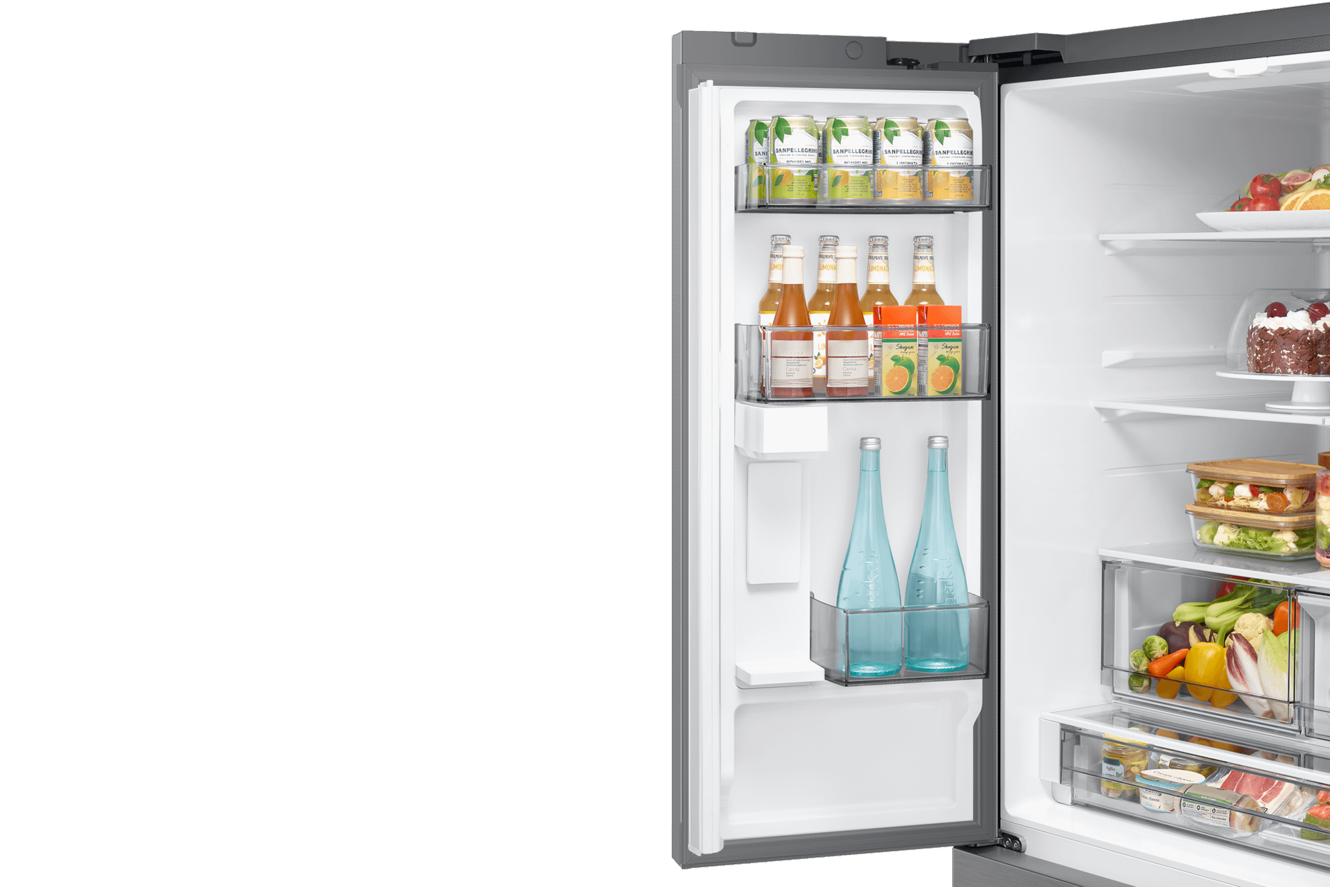 • The Slide-in Shelf makes it easy to adjust your storage based on your needs. Simply adjust the shelf to create space for tall bottles, large containers and everything in between.