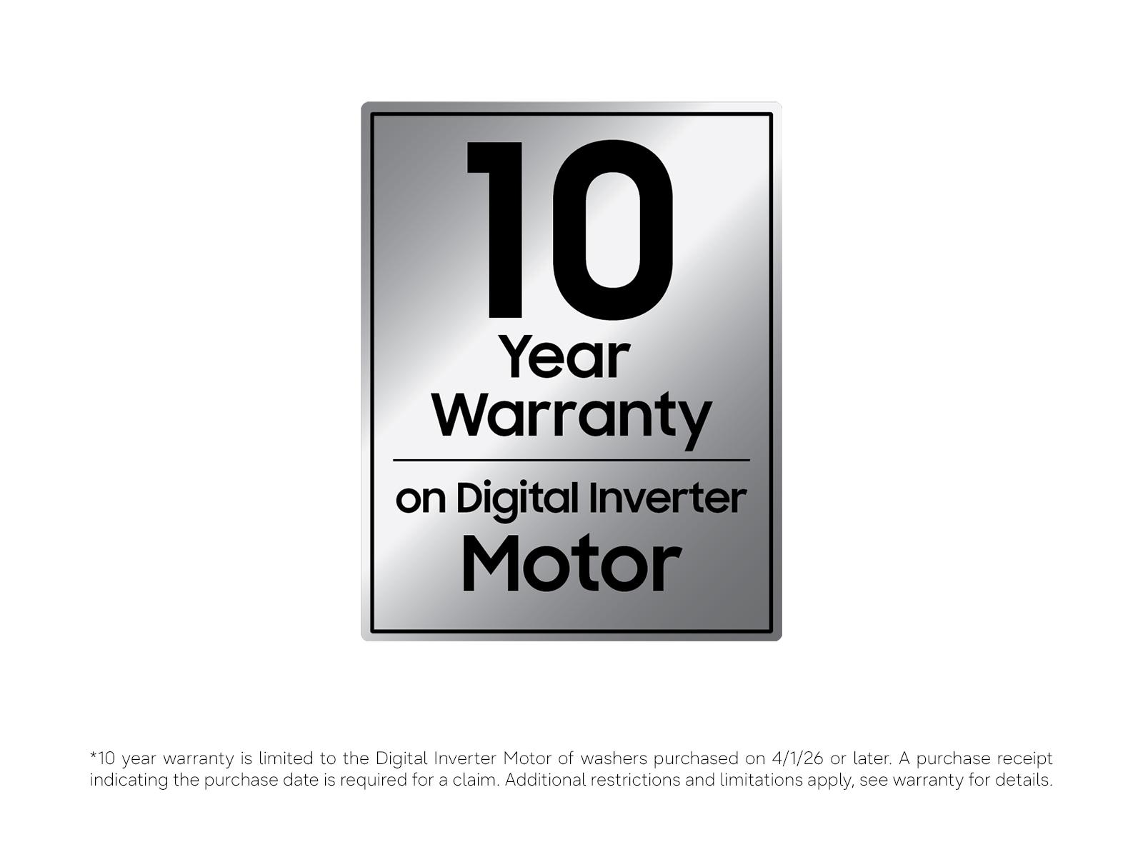 Purchase Samsung washers with confidence and receive a 10-Year Warranty on the Digital Inverter Motor.*