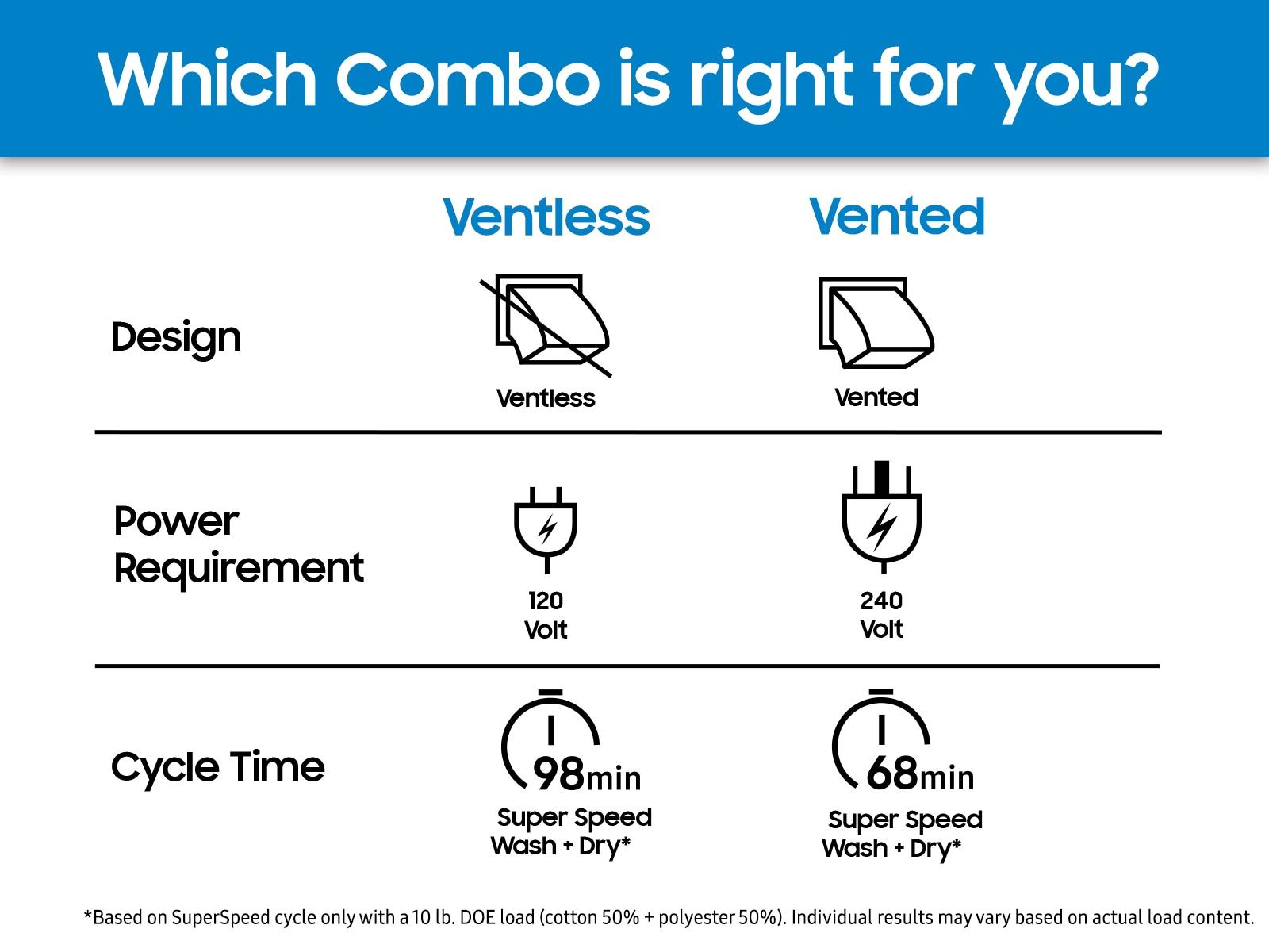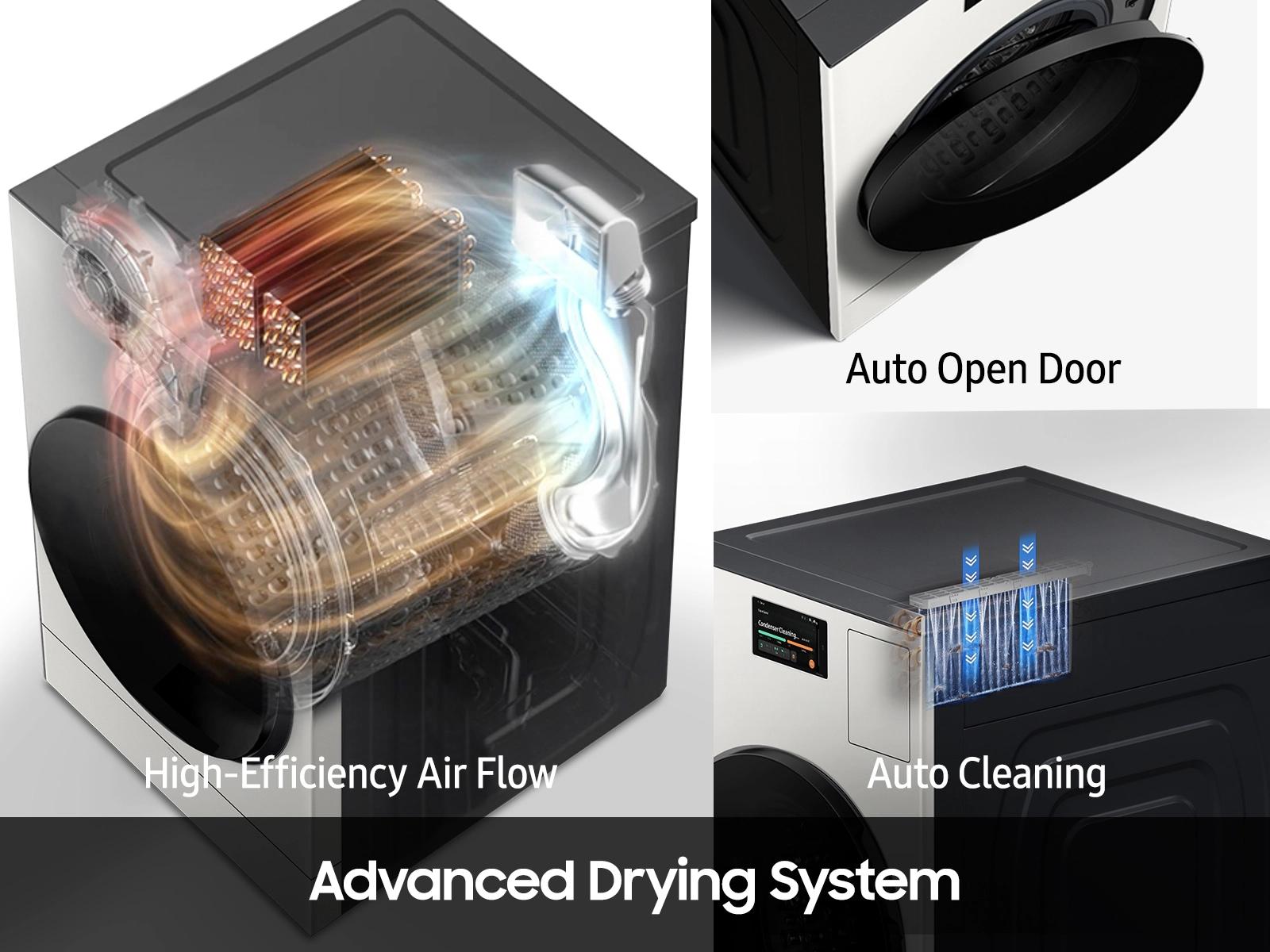 The AI Laundry Combo(TM) dryer has the highest powered heat pump system, which improves drying efficiency and performance in a ventless washer dryer.