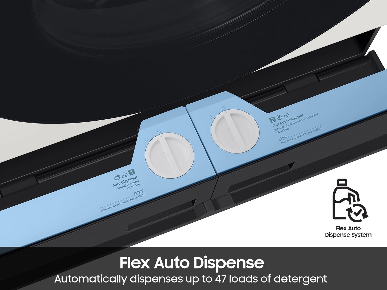 Automatically dispense up to 47 loads of detergent or flex to dispense up to 34 loads of softener and 25 loads of detergent.