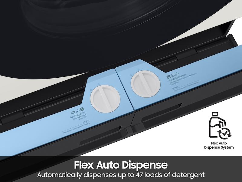 • Flex Auto Dispense System(BR)Automatically dispense up to 47 loads of detergent or flex one compartment to dispense up to 34 loads of softener and 25 loads of detergent with the Flex Auto Dispense System.