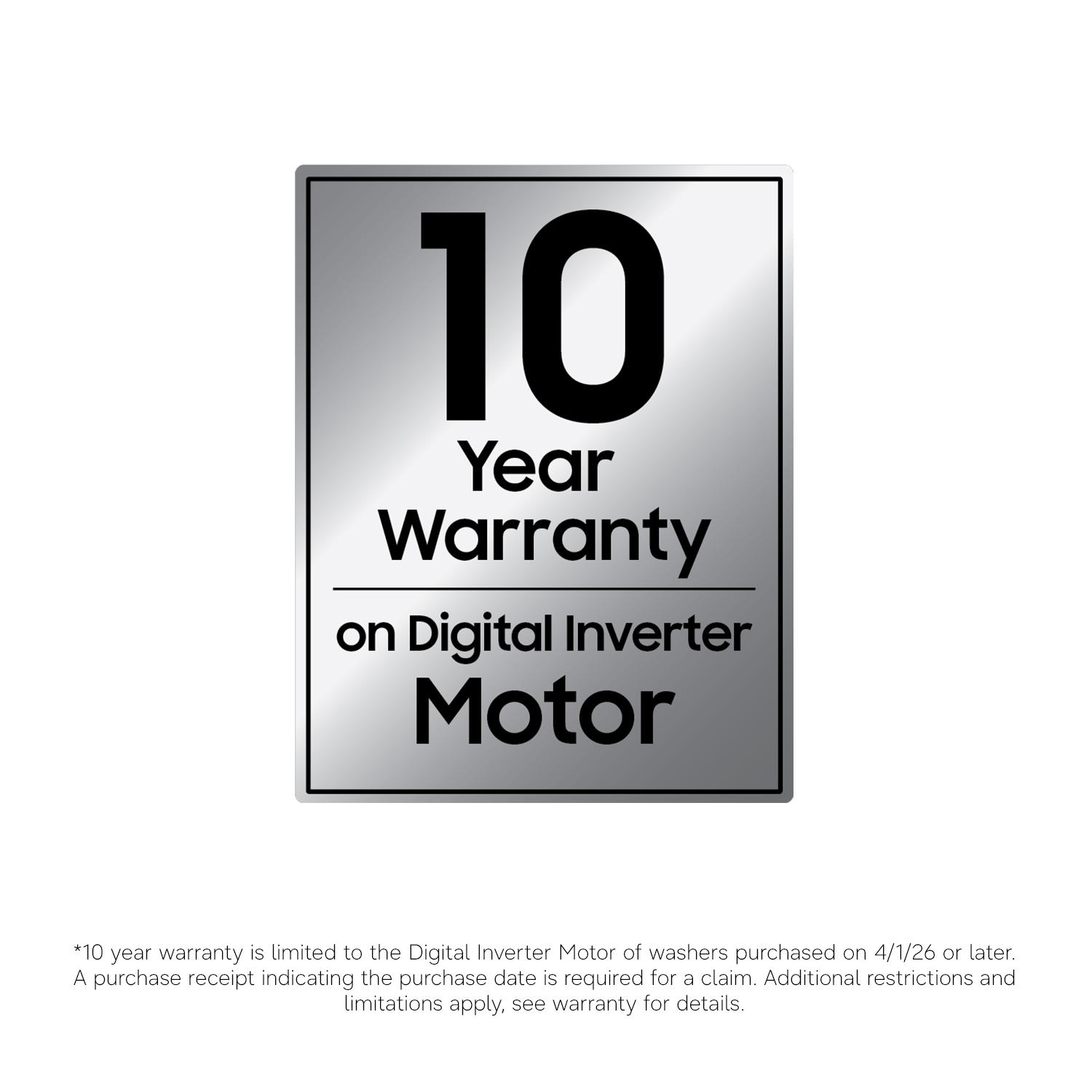 • Purchase Samsung washers with confidence and receive a 20-Year Warranty on the Digital Inverter Motor.