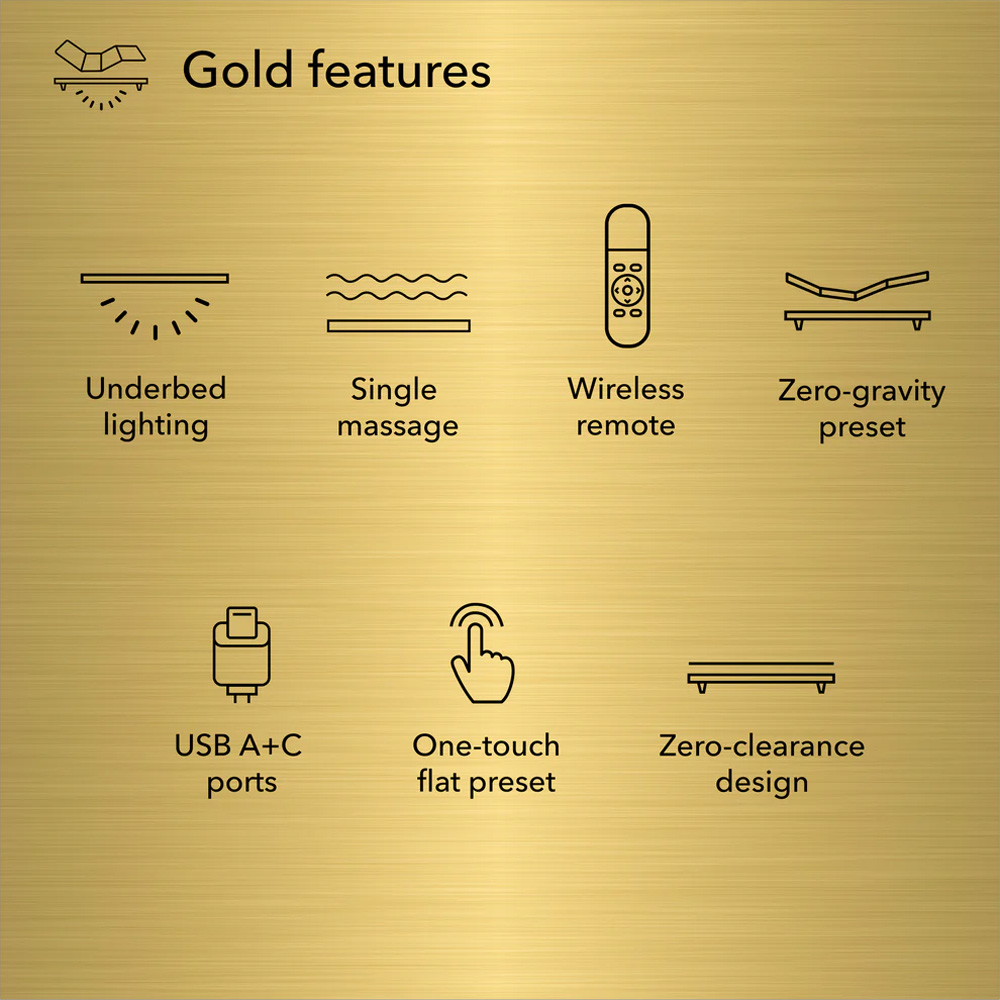 Make relaxation a priority with the Baselogic™ Adjustable Full Gold Base, elevated features take your rest to the next level.