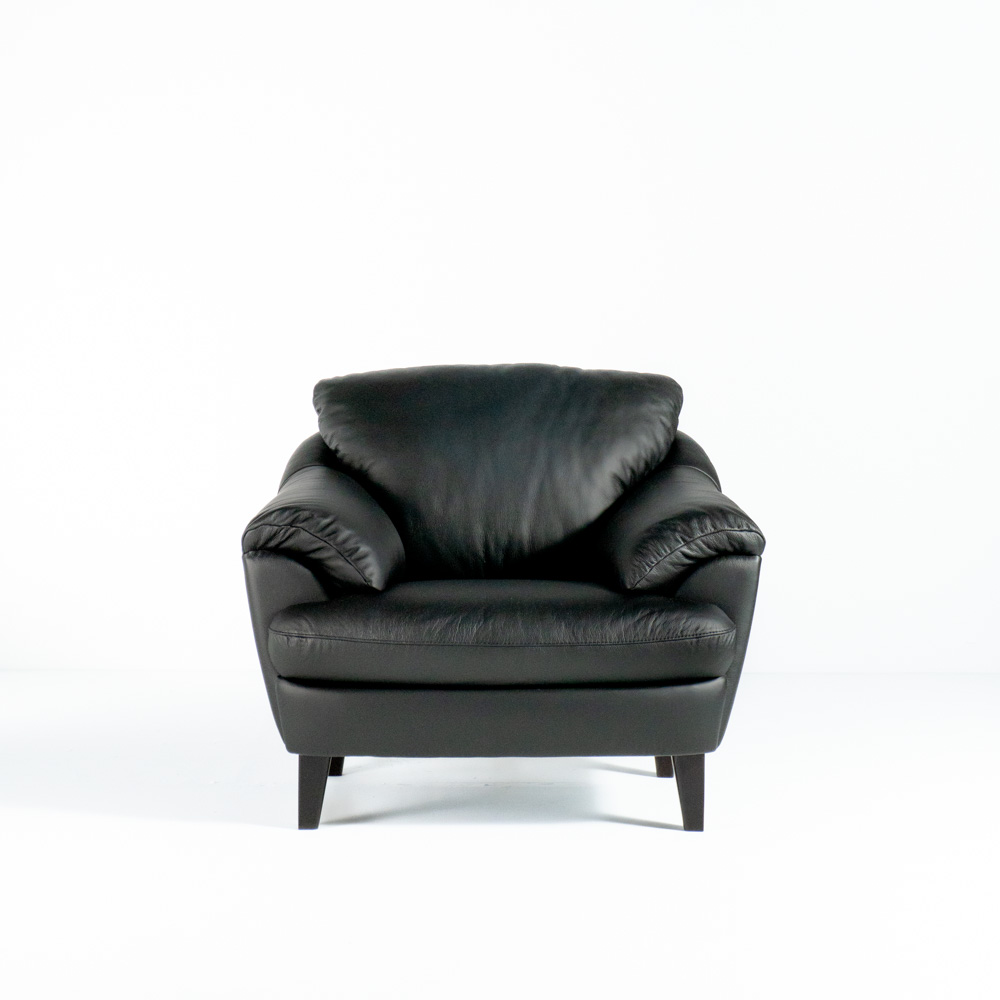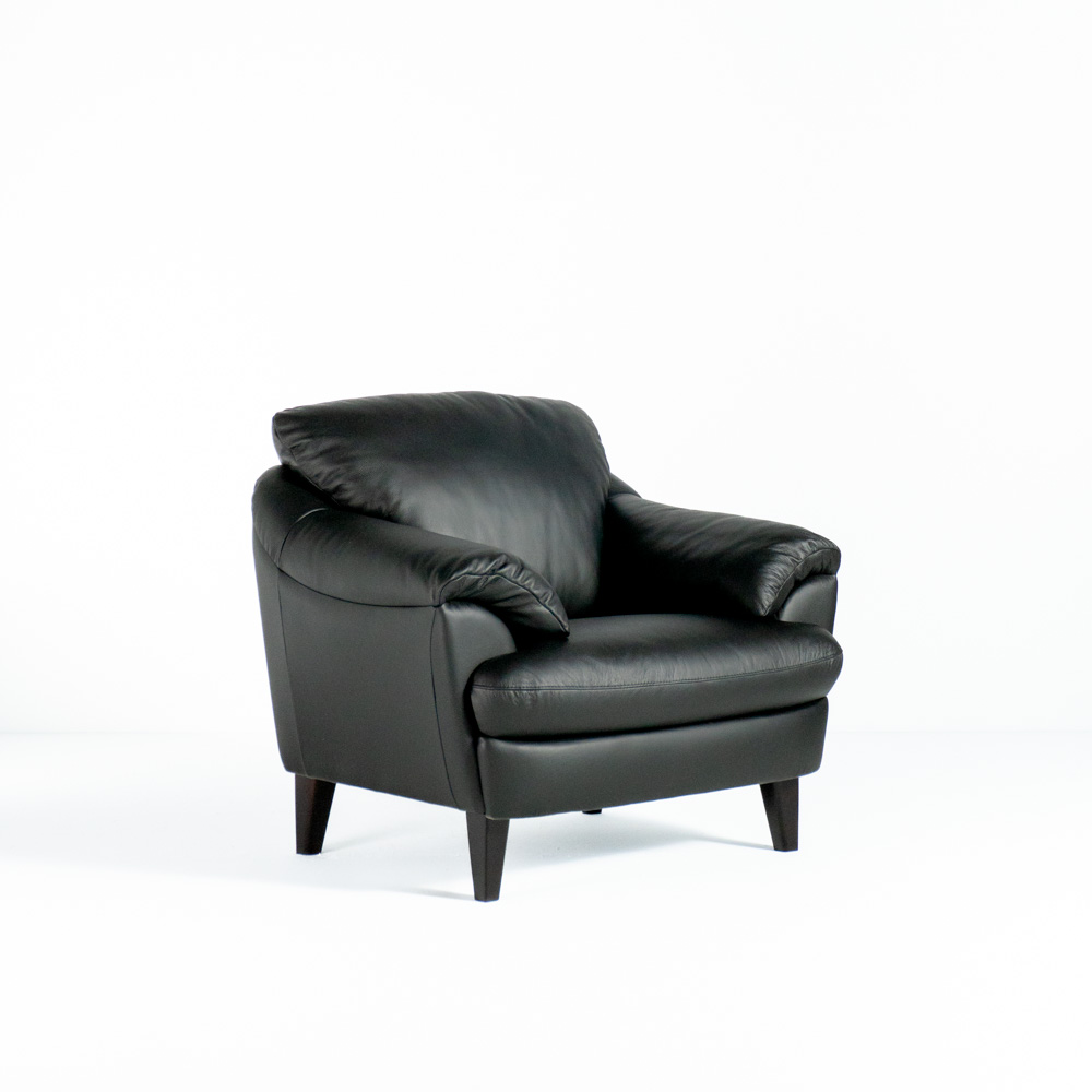 The Natuzzi Pisa Arm Chair brings timeless Italian craftsmanship to your space. Wrapped in premium all-leather upholstery, this 42” wide chair features plush cushioning, a solid wood frame, and elegant shaker wood legs—offering both style and comfort in a compact design.