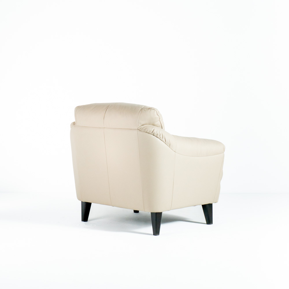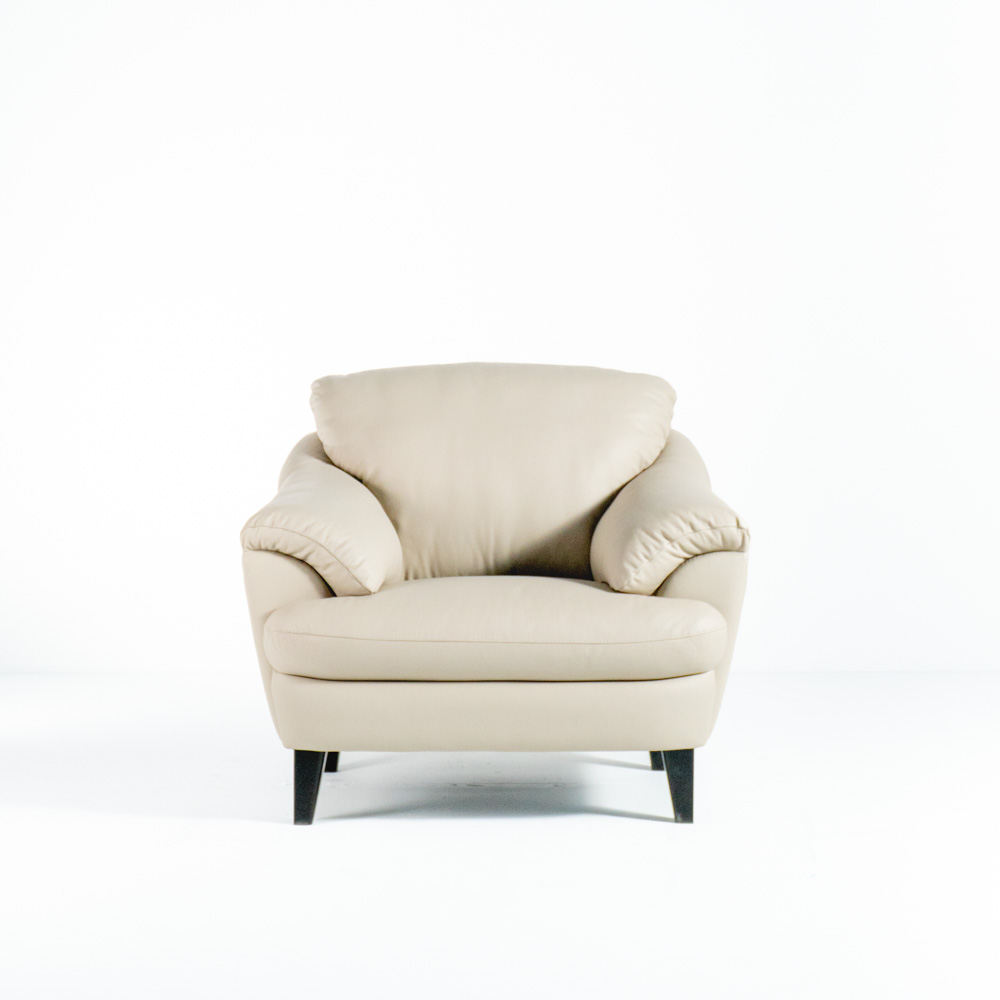 The Natuzzi Pisa Arm Chair brings timeless Italian craftsmanship to your space. Wrapped in premium all-leather upholstery, this 42” wide chair features plush cushioning, a solid wood frame, and elegant shaker wood legs—offering both style and comfort in a compact design.