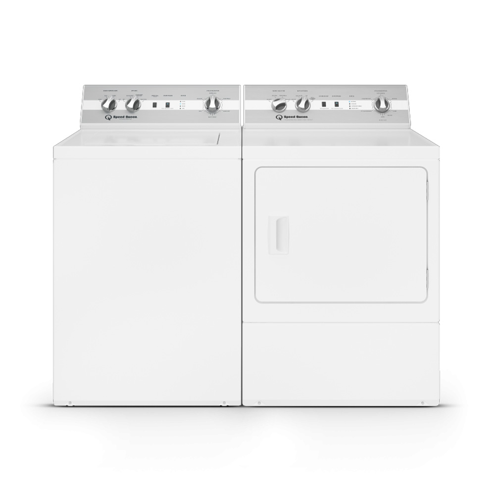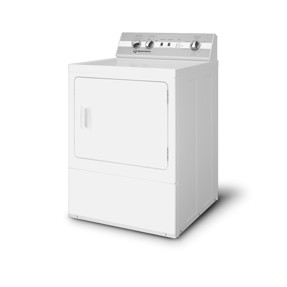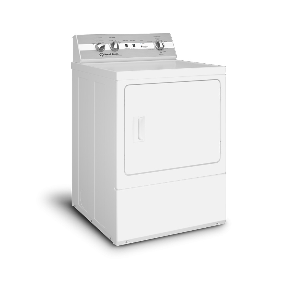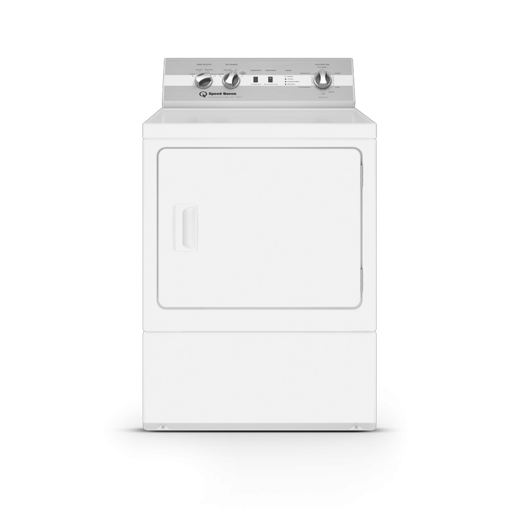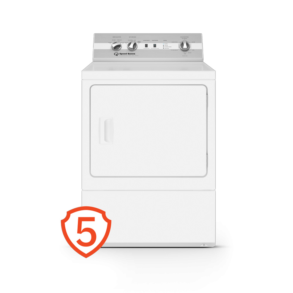 The Speed Queen DC5 Gas Dryer delivers powerful sanitizing performance, Pet Plus™ technology, steam refresh, and wrinkle-fighting extended tumble—all backed by a 5-year warranty and American-made quality.