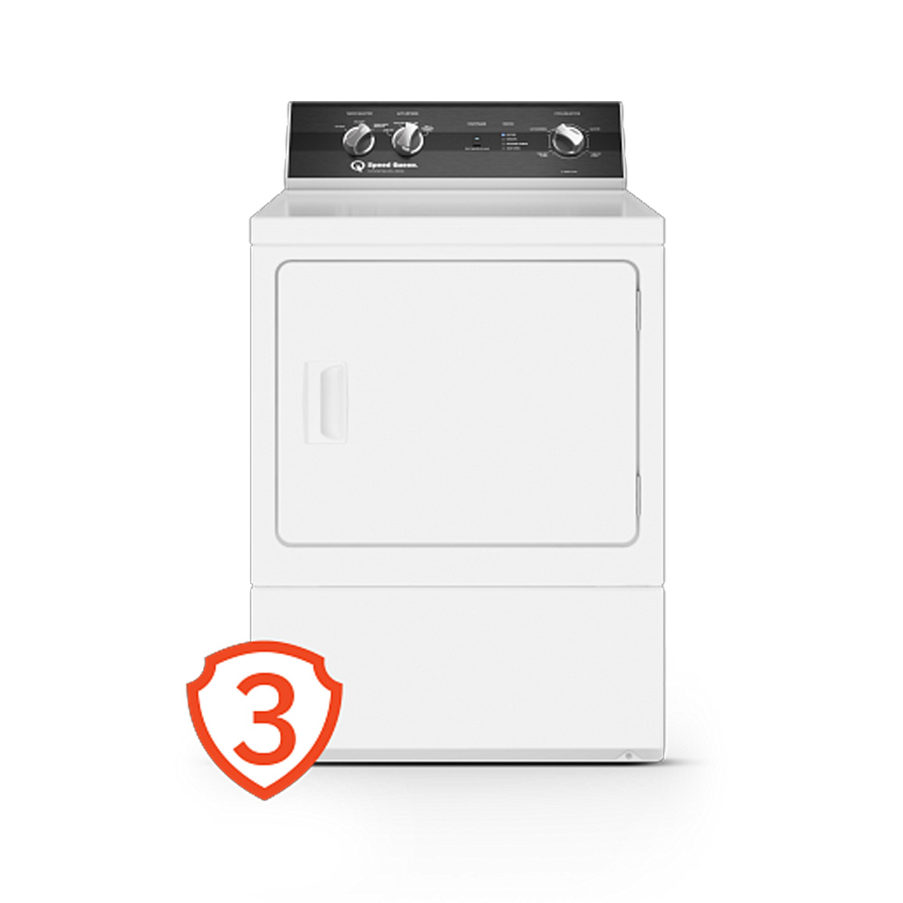 The Speed Queen DR3 Sanitizing Gas Dryer (Model DR3004WG) offers a 7.0 cu. ft. capacity, sanitizing high-heat cycle, and extended tumble to reduce wrinkles. Built for long-lasting performance with a 3-year warranty.