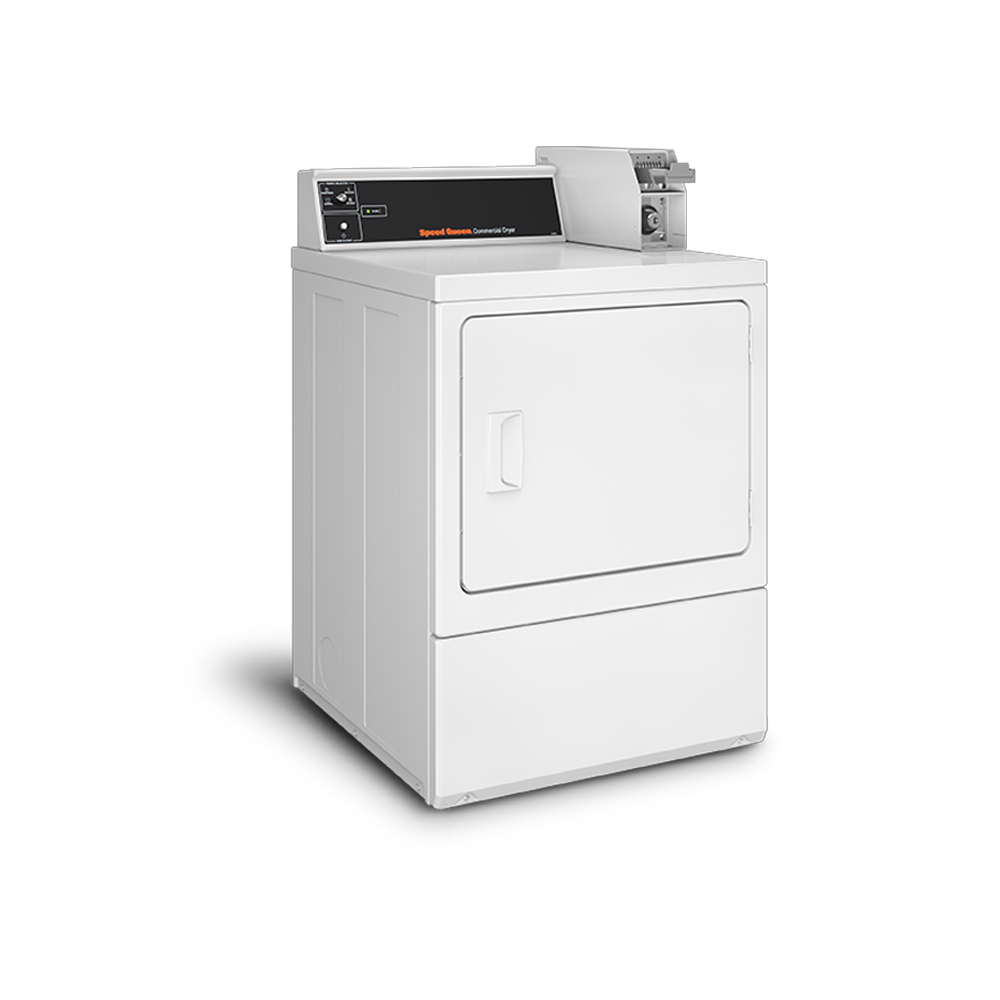 Speed Queen® coin slide electric dryer delivers dependable performance with durable construction, energy-efficient operation, and secure coin control. Coin kits sold separately.