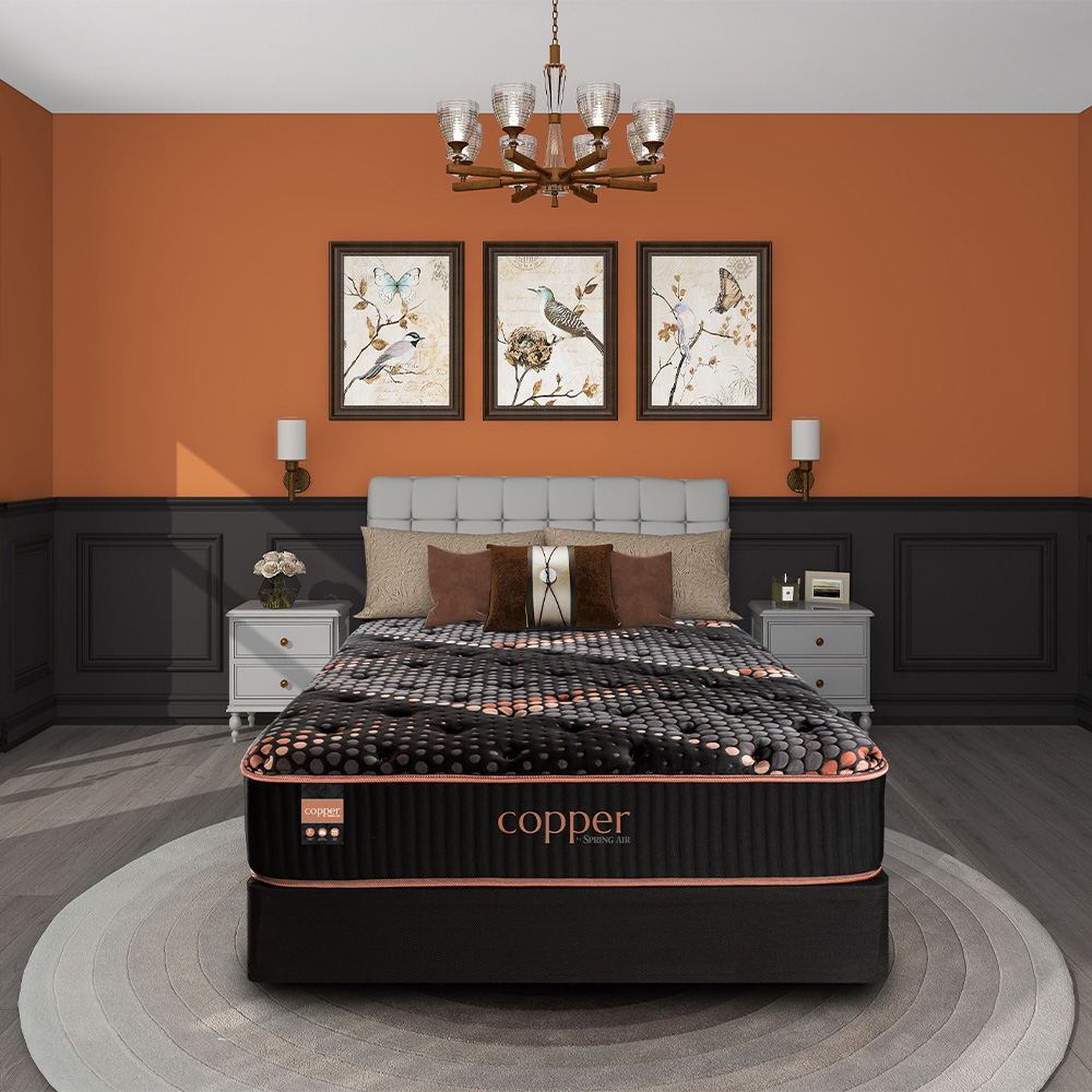 The Spring Air Olympic Hybrid Ultra Cushion Firm Mattress pairs the natural cleanliness of copper with responsive comfort layers that help manage heat and provide calm, undisturbed sleep across all positions. The NatuVerex Copper Infused Cooling Cover promotes cooling airflow and clean rest. Below, comfort layers respond to pressure zones and align the spine. This mattress is built in the USA to deliver wellness-forward comfort and reliable support across years of use.