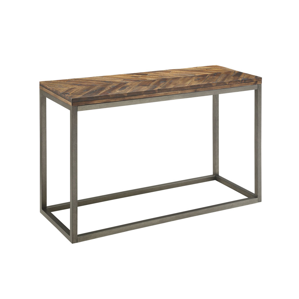 The fashion-forward sled style metal base pairs beautifully with the heavily distressed chevron-patterned smoky honey top to delivery a vintage feel comfortable with any casual style.