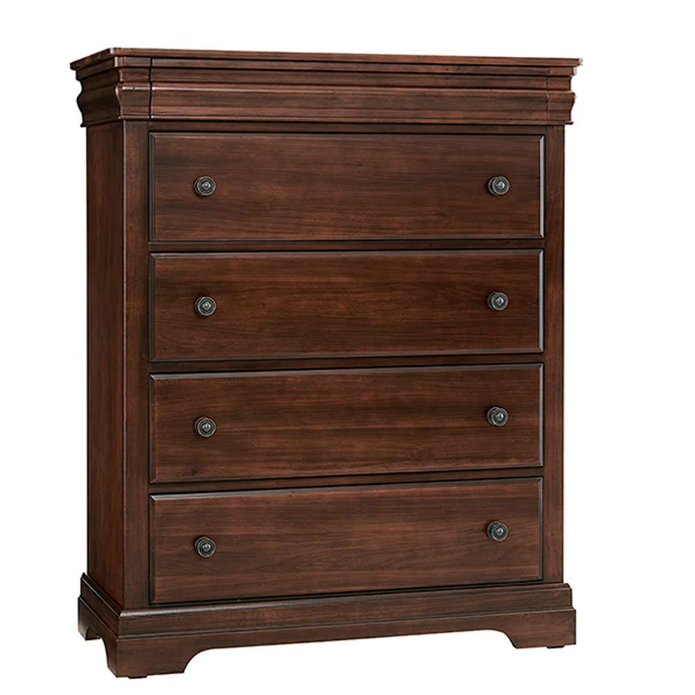 A classic five drawer chest for any master bedroom. Louis Philippe inspired design features a felt-lined drawer hidden behind the shaped molding at the top of the chest.