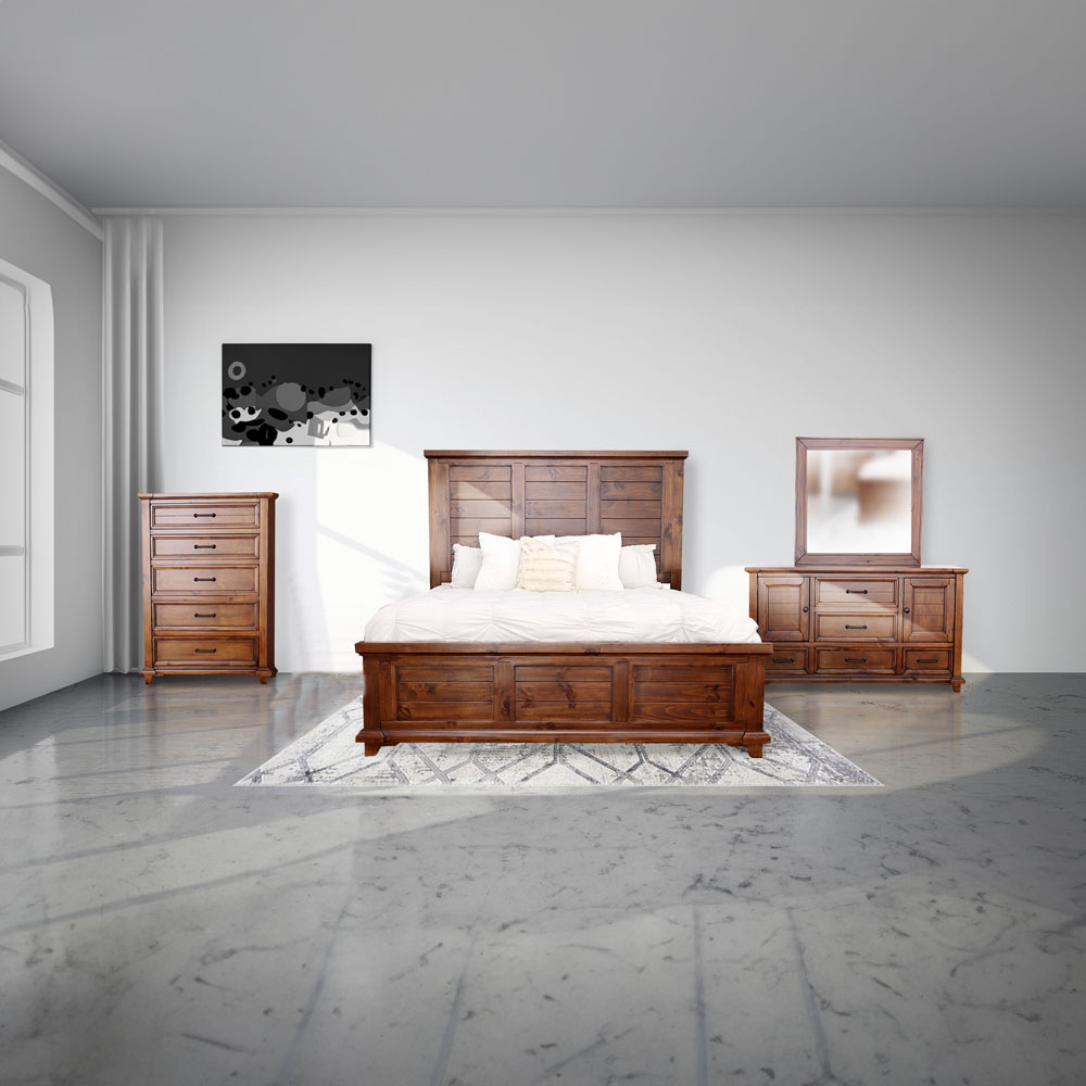 • Package Includes Dresser, Mirror, Chest, Headboard, Footboard and Side Rails