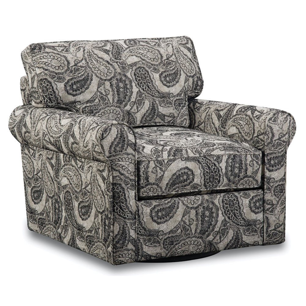 Roxanne Swivel Accent Chair with Ebony paisley fabirc cover