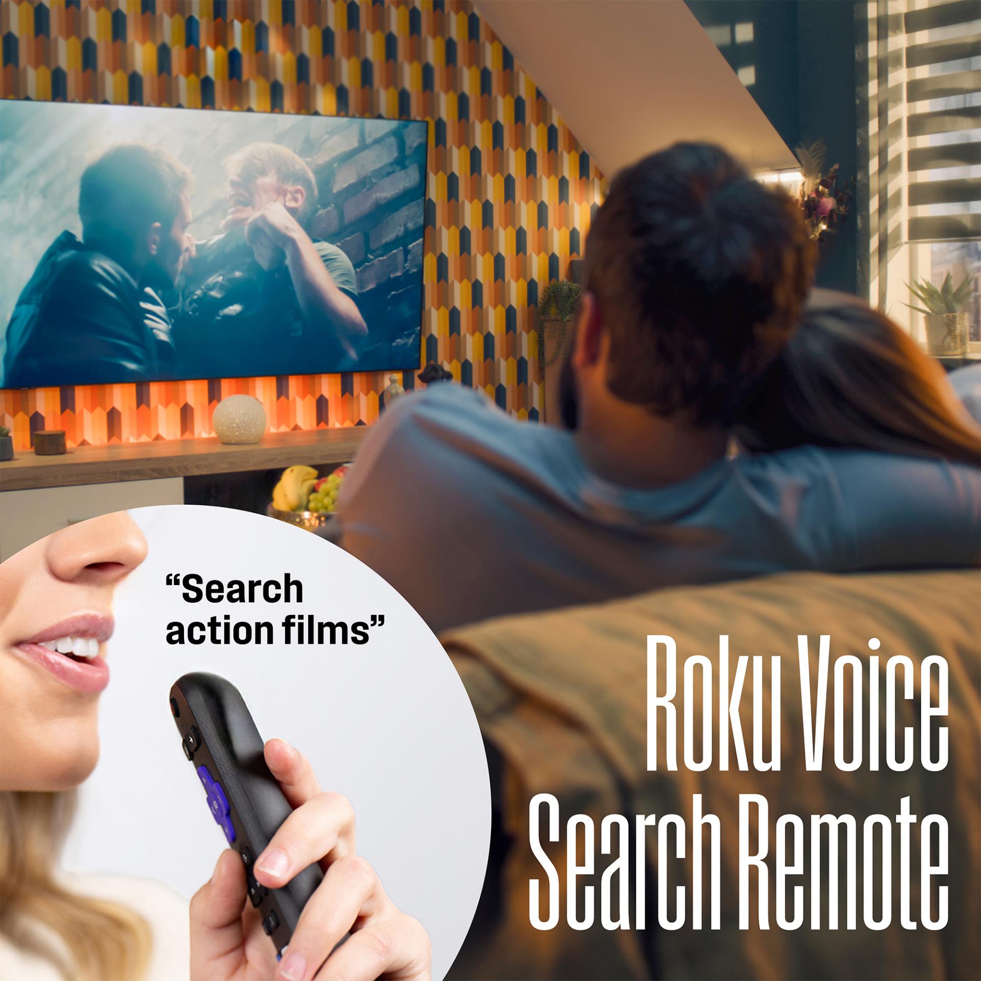 • Roku Voice Remote - a convenient push-to-talk button, allows you to effortlessly search, play entertainment, and perform various tasks using your voice. Harness the power of your voice to swiftly explore a vast array of channels, indulge in entertainment, and much more.