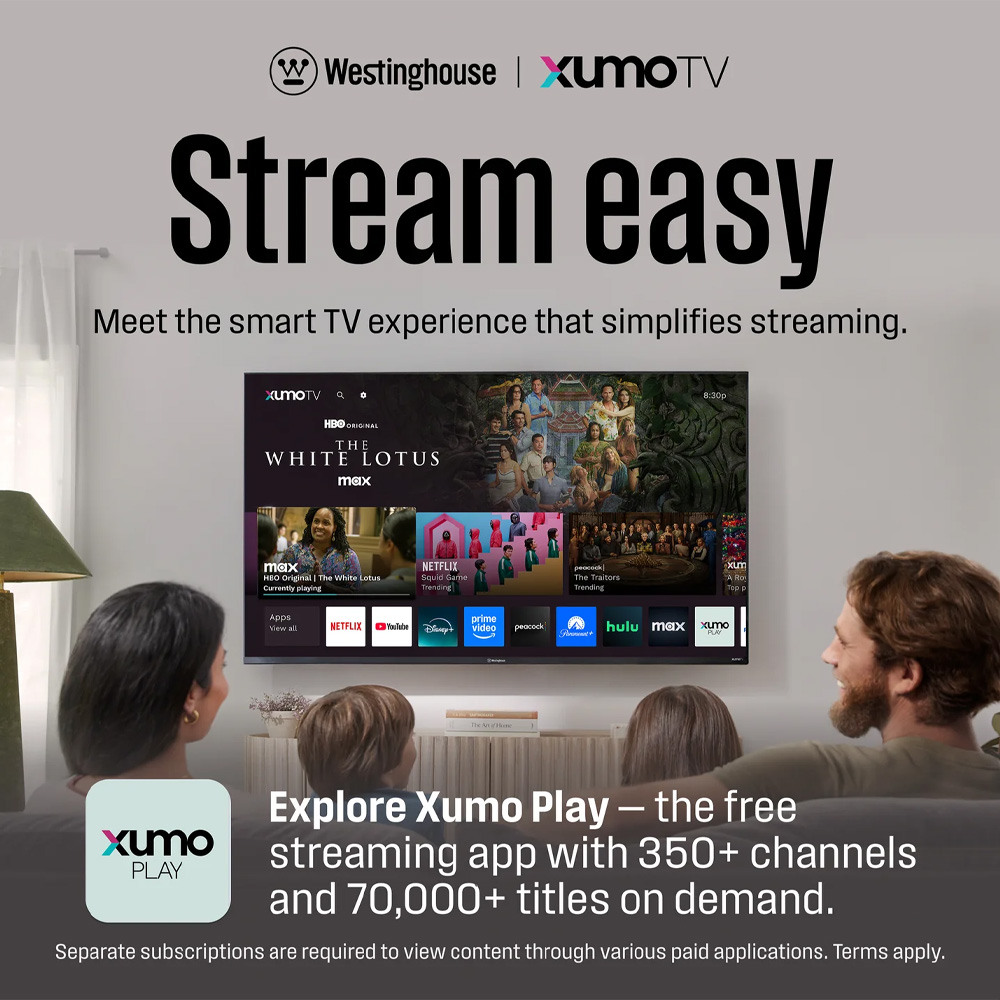 Experience every detail in breathtaking clarity with this 4K UHD XUMO TV. With four times the resolution of standard HD, Dolby Vision, and HDR+ technology, this TV delivers vivid colors, deep contrast, and lifelike picture quality—perfect for movies, sports, and next-gen gaming. Enjoy instant access to top streaming apps like Netflix, Disney+, and Hulu, plus 350+ free live channels and 15,000+ on-demand shows with the Xumo Play app—no subscriptions or downloads required. Find exactly what you want to watch using the voice remote with universal search across all your apps—speak and play. Apple AirPlay, built-in WiFi, and Bluetooth make it easy to stream, mirror, or pair with your favorite devices for a completely wireless experience. With 3 HDMI ports, USB, composite video, and optical audio, this smart TV offers maximum flexibility for all your entertainment needs in a sleek, modern design.