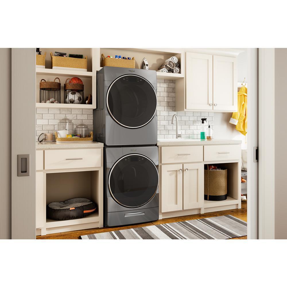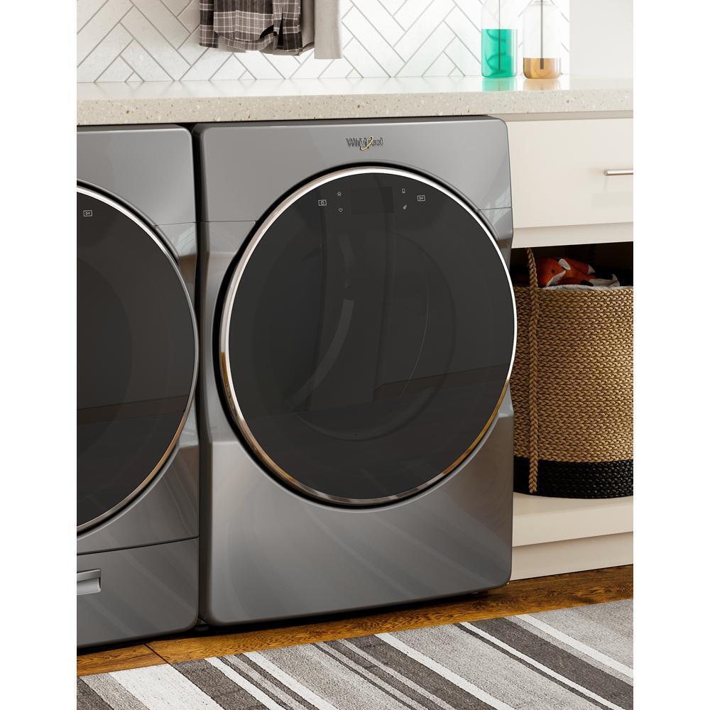 Stay in control and connected from anywhere with a smart front load dryer and the Whirlpool app.* It includes a dryer rack that attaches inside the stainless steel drum for tumble-free drying of bulky or delicate items. When drying ends, the ENERGY STAR certified electric dryer's Wrinkle Shield Plus option with Steam helps release and prevent wrinkles.