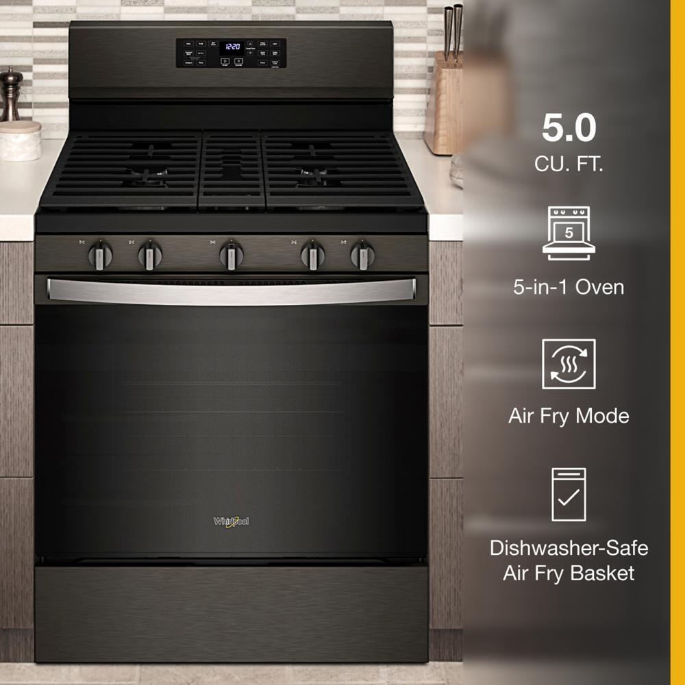 Cook however you want with a gas 5-in-1 Air Fry Oven. You can air fry your favorite foods like chicken wings, nuggets and fries right in your oven with the included air fryer basket that s dishwasher safe. Features like Fan Convection Cooking and the high heat gas burner give you the flexibility to cook a variety of dishes.