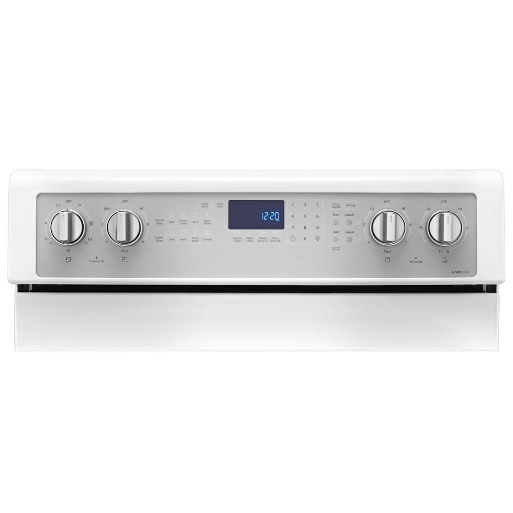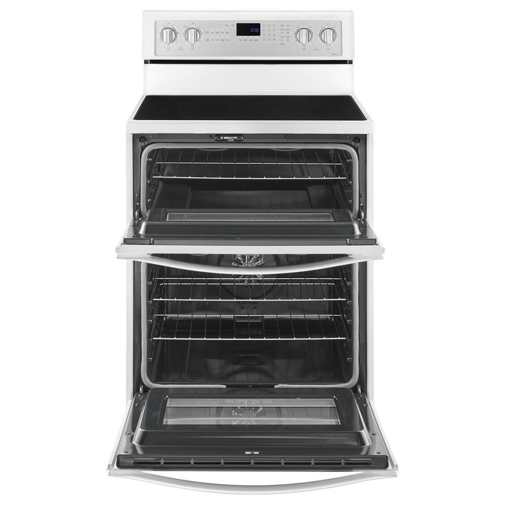 Get dinner on the table quickly with this electric double oven range. True convection cooking lets you cook food faster. Convection Conversion will do the math for you to adjust cooking times and temperatures. Skip preheating this kitchen range for frozen favorites like pizza, lasagna, chicken nuggets, fries or pies, thanks to Frozen Bake technology. The FlexHeat triple radiant element is like having three elements in one to fit small pots and pans and make room for larger cookware on the range stove. And if you make a mess, AquaLift self-cleaning technology provides this kitchen range with odor-free cleaning without harsh chemicals in only 50 minutes.
