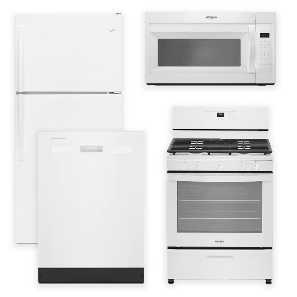 Transform your kitchen with this stunning Whirlpool appliance package, designed to bring both style and functionality to your home. The package includes a sleek top-freezer refrigerator, a versatile freestanding gas range, an over-the-range microwave, and an efficient built-in dishwasher. This Whirlpool appliance package seamlessly blends advanced performance with elegant design, providing the ultimate upgrade for your kitchen.