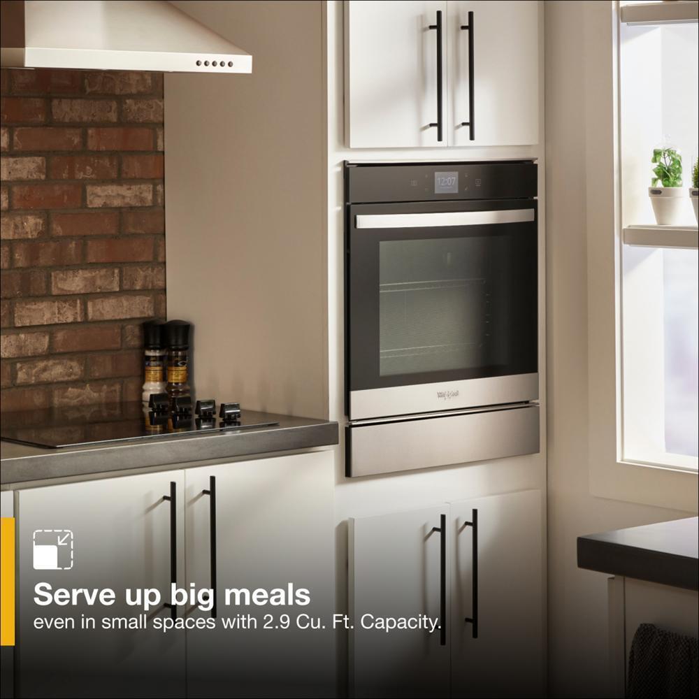Cook however you want with a 24 inch convection wall oven. Bake multiple items at once with True Convection Cooking and clean this 24 inch self cleaning wall oven using the Adjustable Self-Clean Cycle. This Smart Wall Oven includes useful features like a Touchscreen that provides instant access to your favorite settings and Voice Control with a Compatible Voice-Enabled Device.