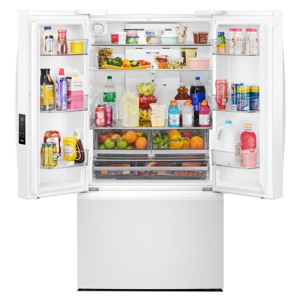 Get Family-Sized capacity with the Whirlpool 31 cu. ft. French door refrigerator. Large Capacity Ice Production makes over 3 lbs of ice every day. Pint Size storage provides easy access to small items. And flexible storage with half and full Adjustable Glass Shelves.