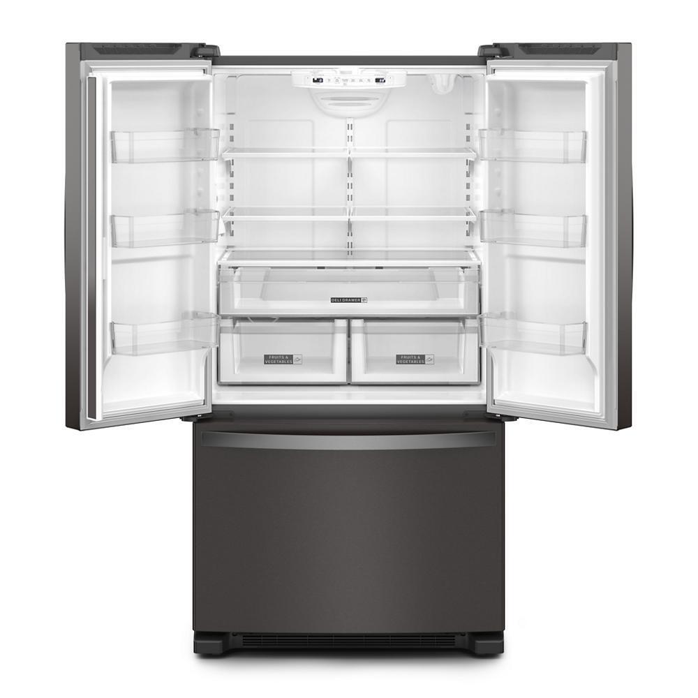 This French Door refrigerator with an internal water dispenser gives you the storage you need with the flexibility you want. With features like an Elevated Deli Drawer, spend less time looking and more time enjoying your deli essentials. The Interior Water Dispenser with Whirlpool Water Filtration offers on-demand filtration so even clean water is easy to find. Get more capacity than counter depth models thanks to its Full Depth Design.