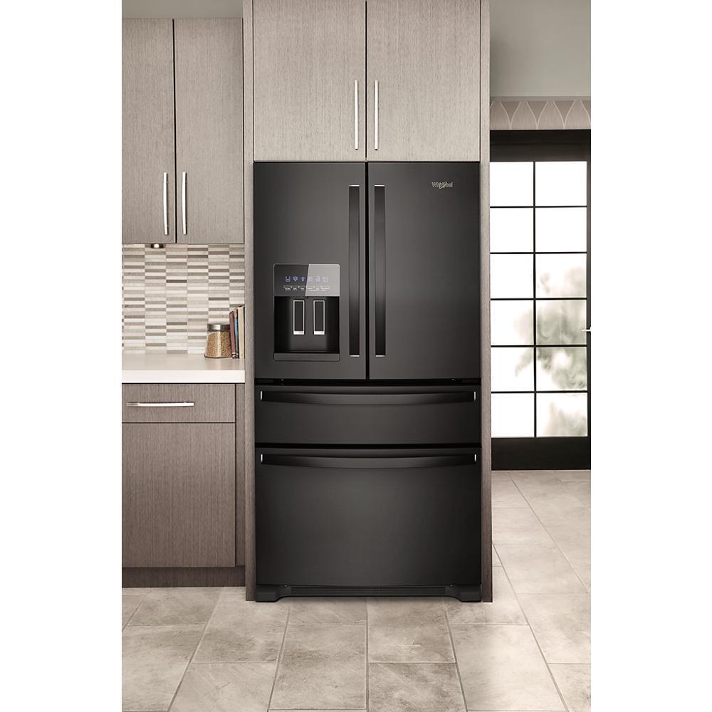 This French Door refrigerator with Exterior Water Dispenser and Whirlpool Water Filtration gives you the storage you need with the flexibility you want. With features like a Refrigerated Exterior Drawer, keep items you use most within reach. Need ice? No French Door Bottom Mount Refrigerator in-door ice maker holds more ice. Get instant access to freshly filtered water and ice without opening the door. Adjustable Shelves and Gallon Door Bins easily move up or down to help make room for tall items while keeping everyday items in sight.
