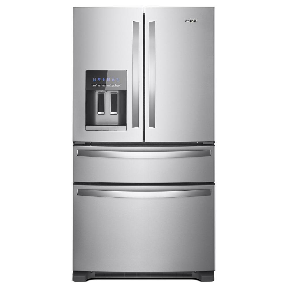 This French Door refrigerator with Exterior Water Dispenser and Whirlpool Water Filtration gives you the storage you need with the flexibility you want. With features like a Refrigerated Exterior Drawer, keep items you use most within reach. Need ice? No French Door Bottom Mount Refrigerator in-door ice maker holds more ice. Get instant access to freshly filtered water and ice without opening the door. Adjustable Shelves and Gallon Door Bins easily move up or down to help make room for tall items while keeping everyday items in sight.