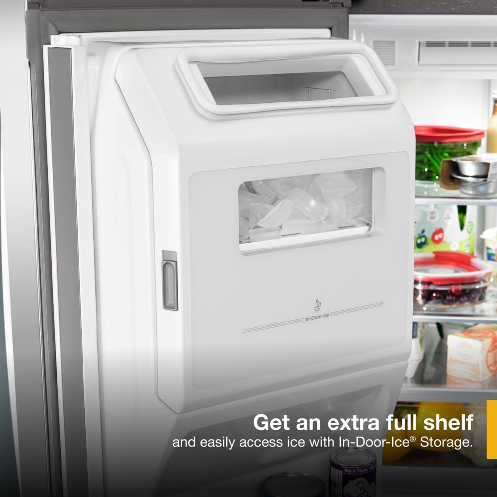 Discover purposeful spaces that help store your family's favorites with this 26 cu. ft. Whirlpool Refrigerator. The new Prep & Store Bins help organize your fridge and keep food visible, while the Prep & Store Shelf makes it easy to access leftovers, prepped meals and more. The Refrigerated Exterior Drawer lets you adjust temperature controls based on what you're storing and features dividers for easy organization. A Triple Crisper with auto-humidity gives you more flexibility to store items, while In-Door-Ice Storage frees up space by moving the ice bin to the inside of the refrigerator door.