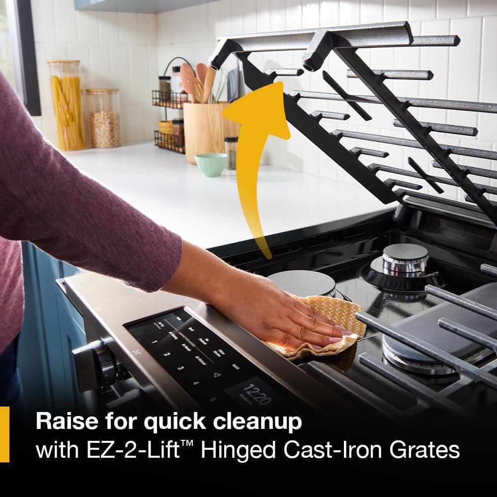 Get the ultimate in Air Cooking Technology and bring fresh options to family dinner this 30-inch, High Speed Preheat 5.0 cu ft gas range. Quickly access spills on the cooktop with our industry-first, dishwasher safe EZ-2-Lift Hinged Cast-Iron Grates. Get crispy and save time with No Preheat Air Fry, and go from gooey to golden and bake evenly on multiple racks with Air Baking. Plus, you can stay on top of the latest cooking features and unlock new ones over time with Smart Feature Updates.