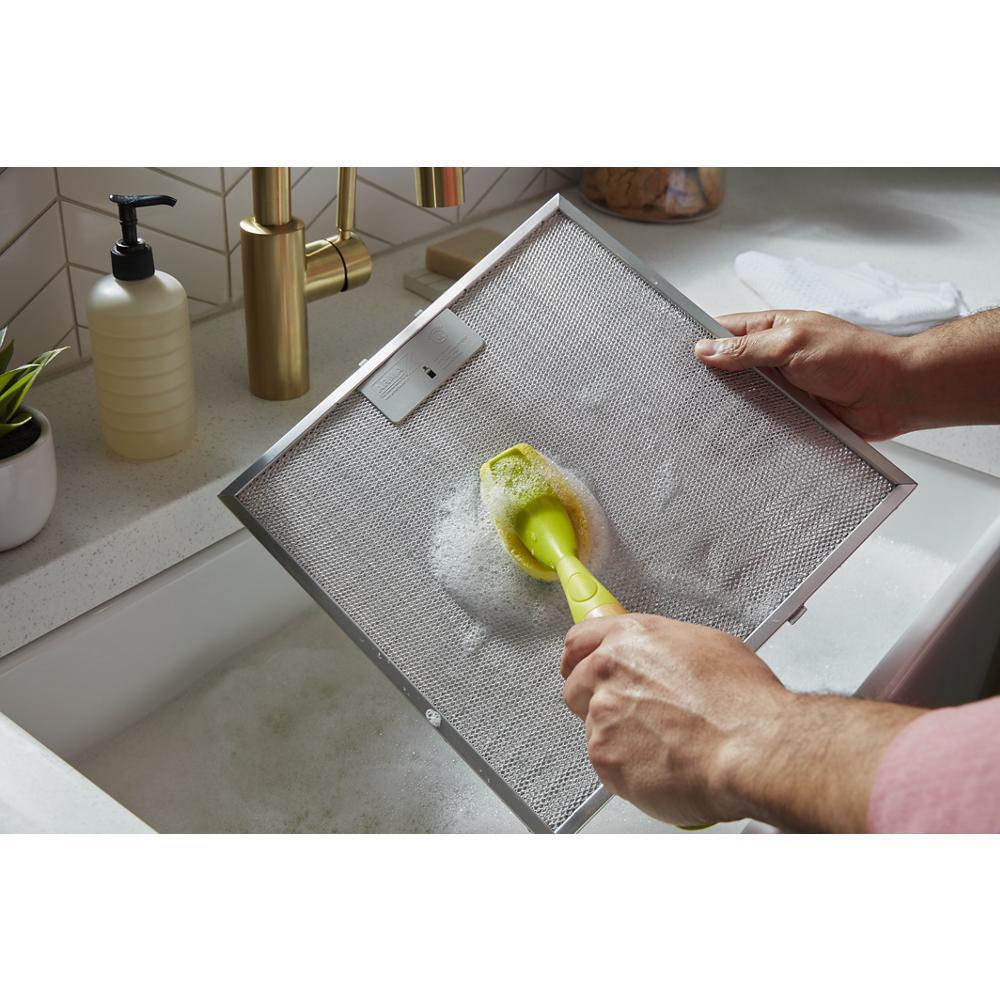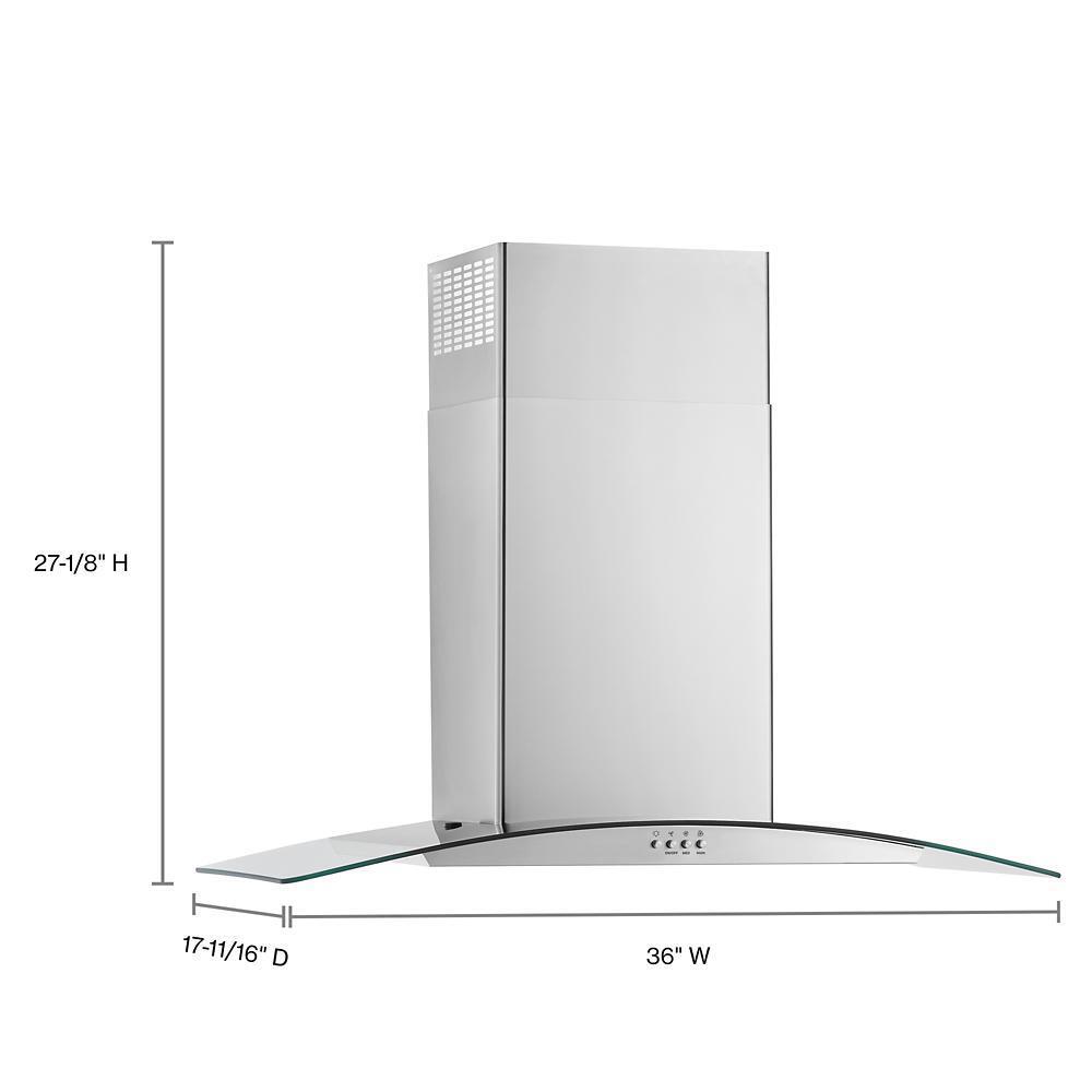 Easily vent smoke and odors with this 400 CFM Motor Class range hood that comes equipped with a 3-speed kitchen exhaust fan for powerful ventilation. This 36" wall mount range hood also comes with a detachable grease filter for convenient cleaning, LED range hood lights and a 65K BTU cooktop threshold.
