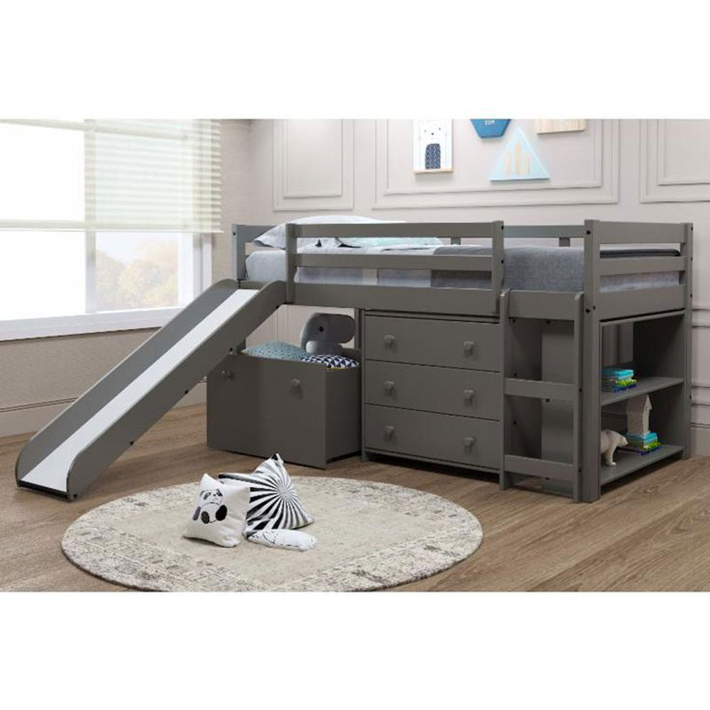 WOODCREST MANUFACTURING MINI-LOFT-BED-W/SLIDE&CHEST